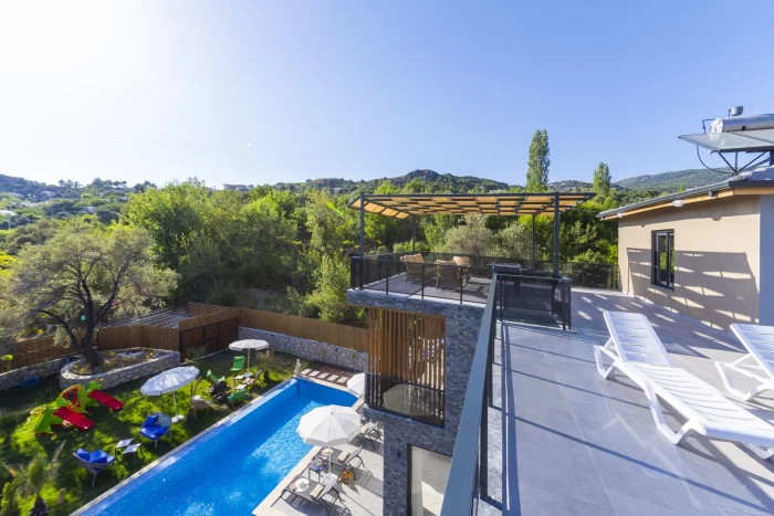 - Havuz: Özel yüzme havuzu ve korunaklı havuz terası, mahremiyete önem veren misafirler için idealdir.
