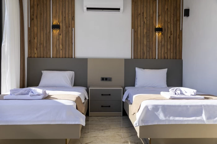 - Kapasite: 3 yatak odası bulunur ve 6 kişiye kadar konaklama imkanı sağlar. Ek yatak ile 8 kişiye kadar konaklama sağlanabilir.